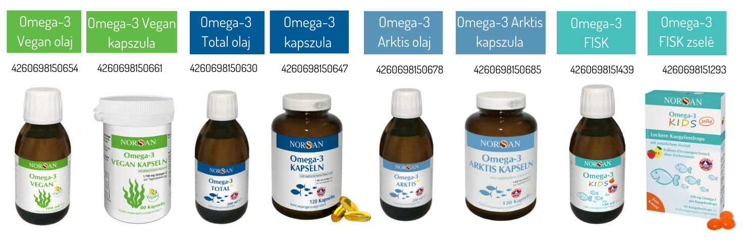 A Norsan olajok nem koncentrátumok, hanem természetes triglicerid formájú hal- és algolajok. Ez jobb felszívódást, kevesebb emésztőrendszeri panaszt és kisebb oxidációs kockázatot jelent.
