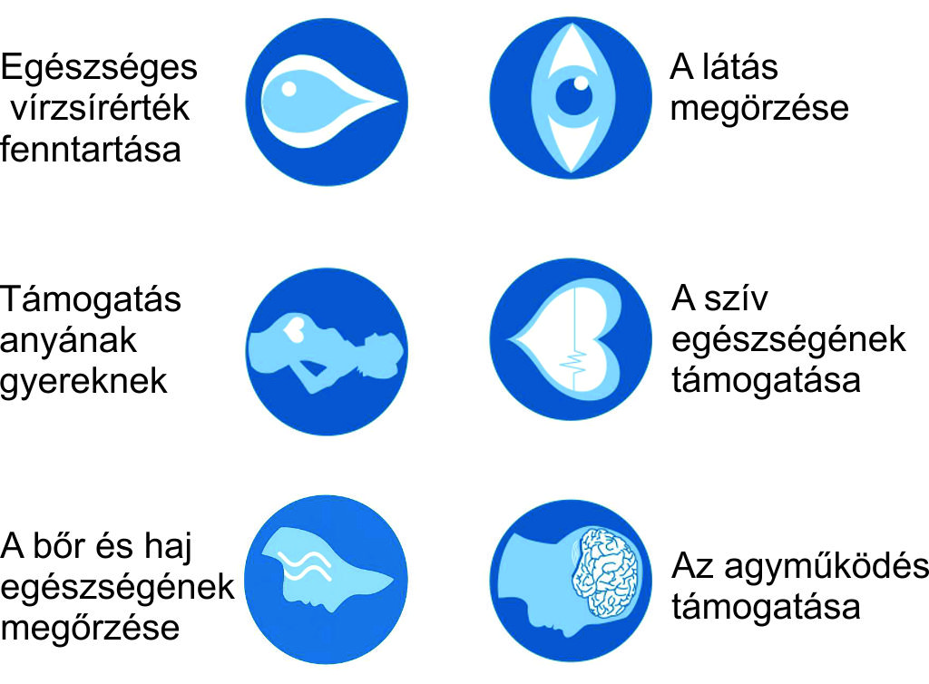 DHA - a membrán rugalmasságát, mozgékonyságát, átjárhatóságát javítja, fibroblaszt aktivitást serkent.